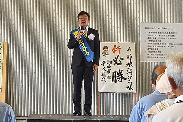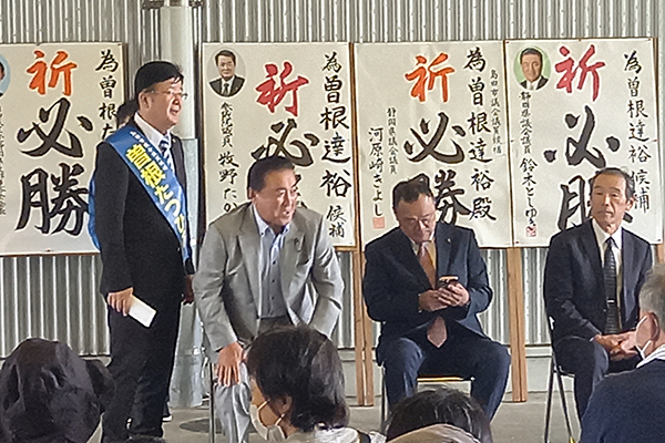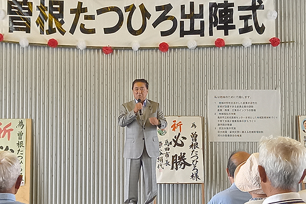 5月18日、私の高校生時代のサッカー部の1つ上の先輩で、現在島田市議会議員を務めております曽根達裕氏の出陣式に参列。お集まりの皆様に御支援のお願いのご挨拶をさせて頂きました。