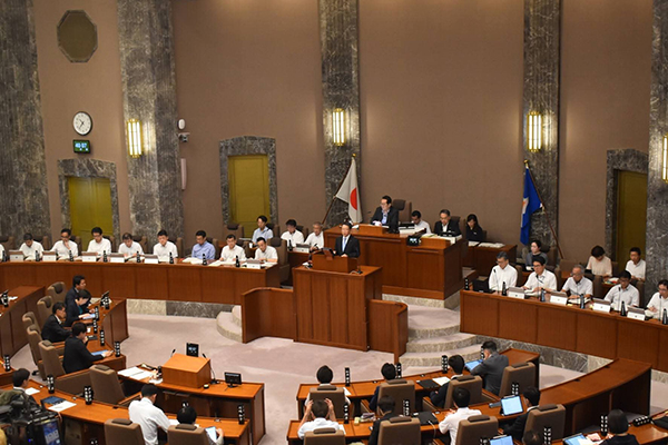 6月23日、午前10時半から始まった本会議。本日は自民改革会議より赤堀議員が代表質問に立ち、知事の政治姿勢、原子力災害への備えについて、富士登山者の閉山期間中の救助における消防防災ヘリコプターの有料化について、新県立中央図書館の整備についての他、計16項目の質問を行いました。午後、議員総会を開いた後1時半から定例会が再開。ふじのくにの県議の代表質問が行われました。閉会後、2度目の議員総会が開かれ新県立中央図書館について話し合いをもちました。