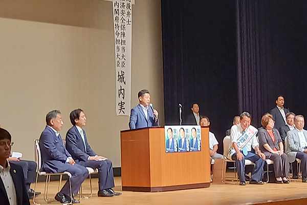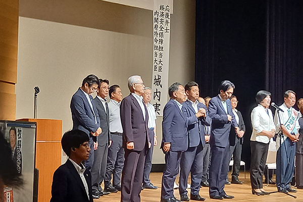 東京から城内大臣も駆けつけ、牧野候補をはじめ全国比例に出馬している候補の紹介がありました。