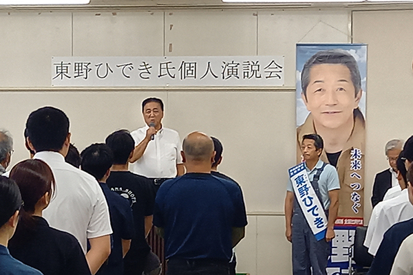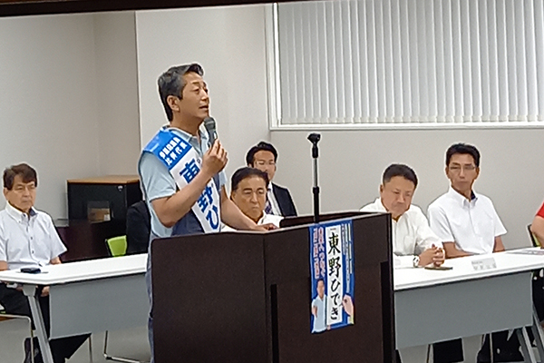 7月16日、朝8時半から行われたJA三ヶ日事務所と9時半からのJAとぴあ浜松本店内で行われました東野ひでき候補本人が訪問しての活動に同行。私もお集まりの皆様にご支援のお願いをさせて頂きました。