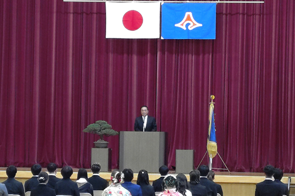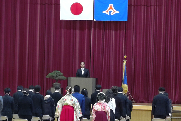 3月18日、本日も同窓会会長として式に参列。来賓としてひと言ご挨拶させて頂きました。卒業生は75名でした。