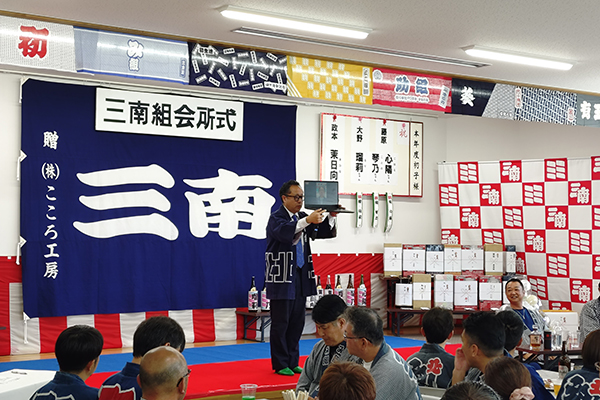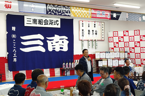 4月19日、午前11時から開催された三南組の会所開きは先月の3月8日に落成式を行ったばかりの新会館「オアシス三南」で行われました。