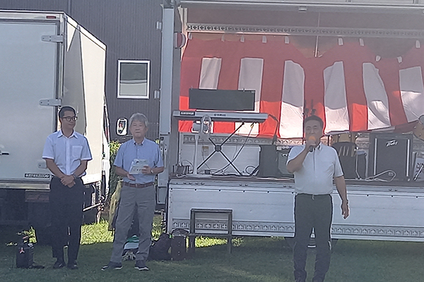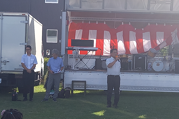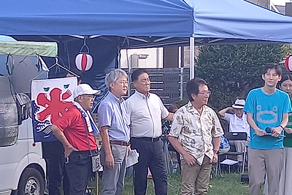 7月26日、夕方4時から開催された初北夏祭り。会場の初生北公演には地域の子供たちもたくさん集まり模擬店を楽しんでおりました。開会にあたりお集まりの皆さんにひと言ご挨拶させて頂きました。