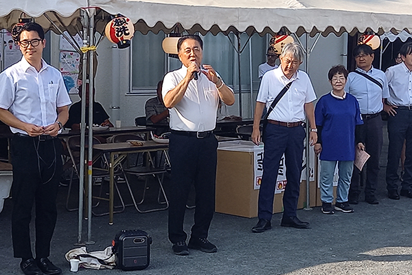 8月2日、午後4時から根洗町自治会による根洗フェスタ2025が公民館前広場で開催。開会式ではひと言ご挨拶させて頂きました。