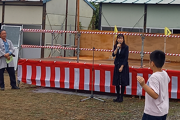 10月11日、午後2時から開催された大原町町民祭。初生神社の例祭終りに駆けつけました。会場に到着すると子供会のおはやし、そしてラッパ隊の披露と大変賑わっておりました。その後お集まりの皆様に向けてひと言ご挨拶をさせて頂きました。