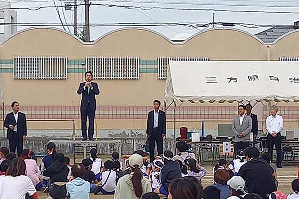10月19日、三方原小学校グラウンドで開催された運動会にお招き頂き開会式に伺いました。今年で45回目と歴史のある町内運動会。東京から城内実大臣も駆けつけ競技開始を前にお集まりの皆様に向けてご挨拶をさせて頂きました。