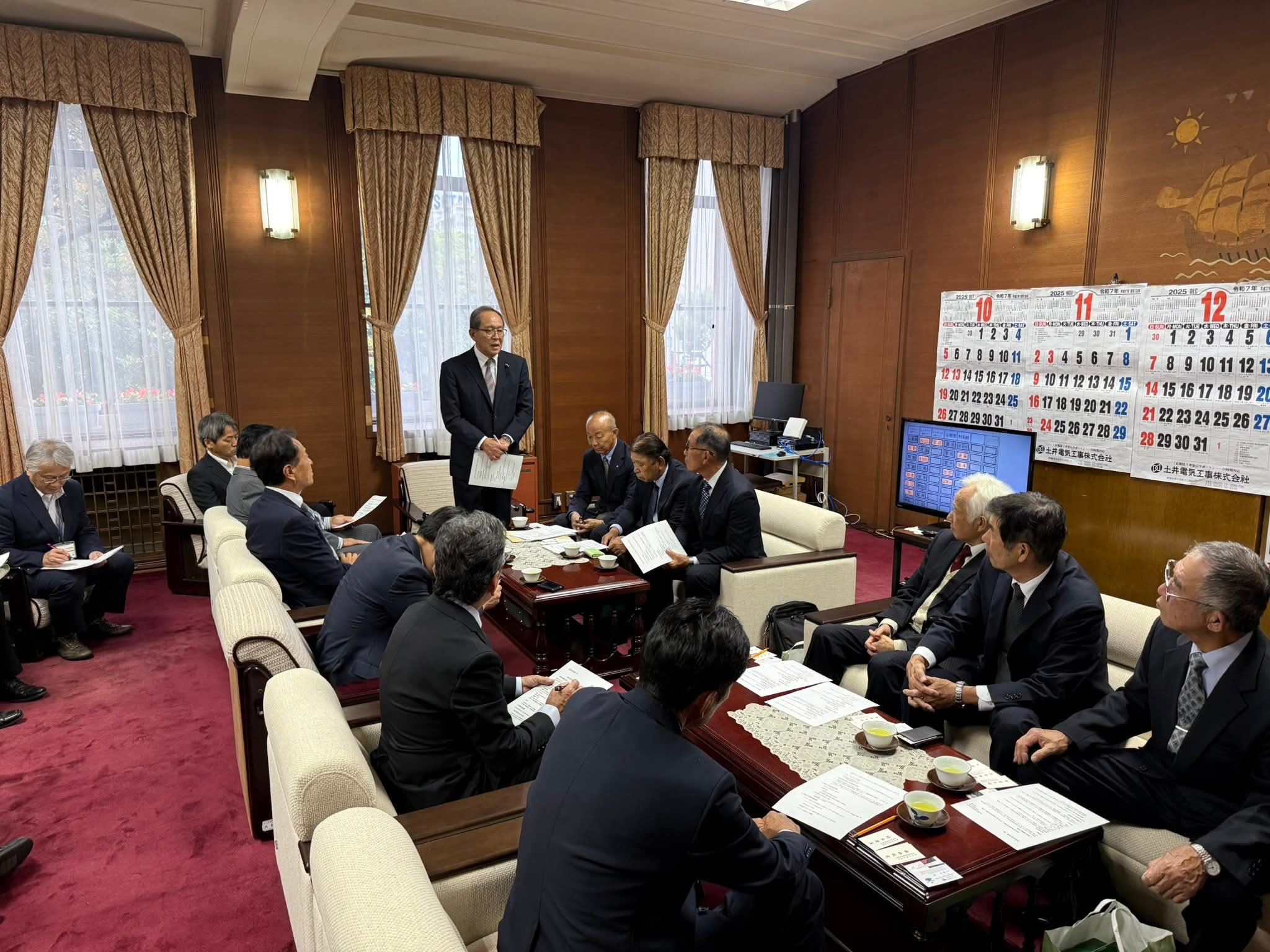 10月22日、県庁に静岡県温室農業組合及びクラウンメロン支所の要望活動があり振興議連の会長として陳情に立ち合いました。内容は燃油の高騰対策、施設の改修補助、今後のクラウンメロン販売におけるマーケティング補助等の要望であります。
