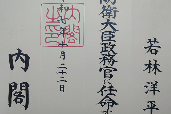 10月22日、衆議院静岡選挙区の若林洋平議員が防衛大臣政務官に任命されました。