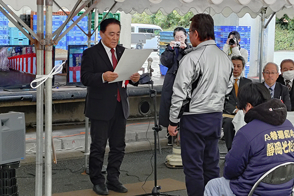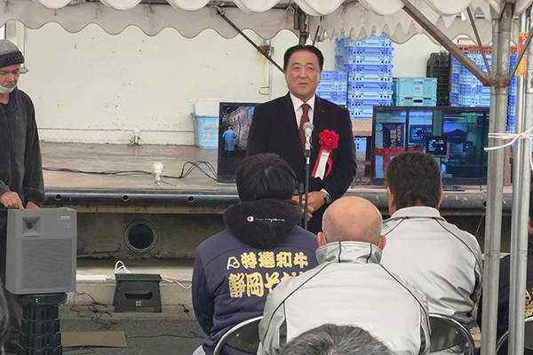 12月6日、浜松市中央区上西町にあります「浜松市食肉地方卸売市場」で開催された共進会。私は自民党畜産振興議員連盟の会長として褒賞授与式に参列。授与式にてひと言ご挨拶をさせて頂きました。